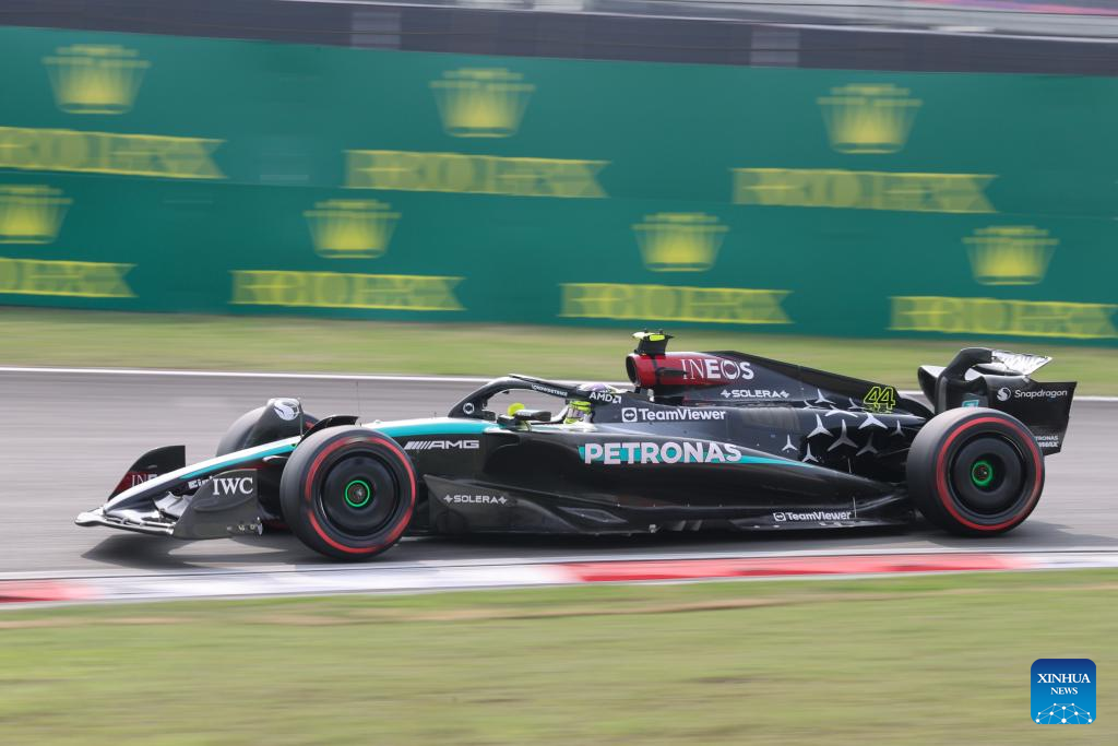 Mercedes' British driver Lewis Hamilton competes during the qualifying session of Chinese Formula One Grand Prix at the Shanghai International Circuit in Shanghai, China, on April 20, 2024. (Xinhua/Wang Xiang)