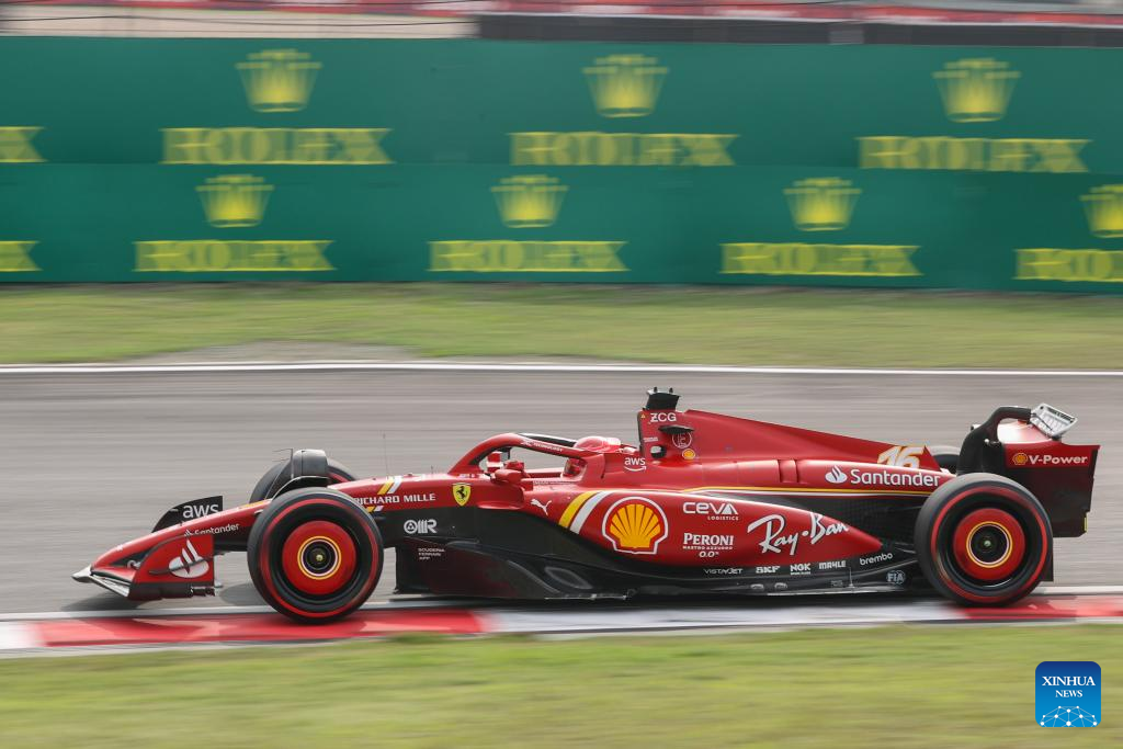 Ferrari's Monegasque driver Charles Leclerc competes during the qualifying session of Chinese Formula One Grand Prix at the Shanghai International Circuit in Shanghai, China, on April 20, 2024. (Xinhua/Wang Xiang)