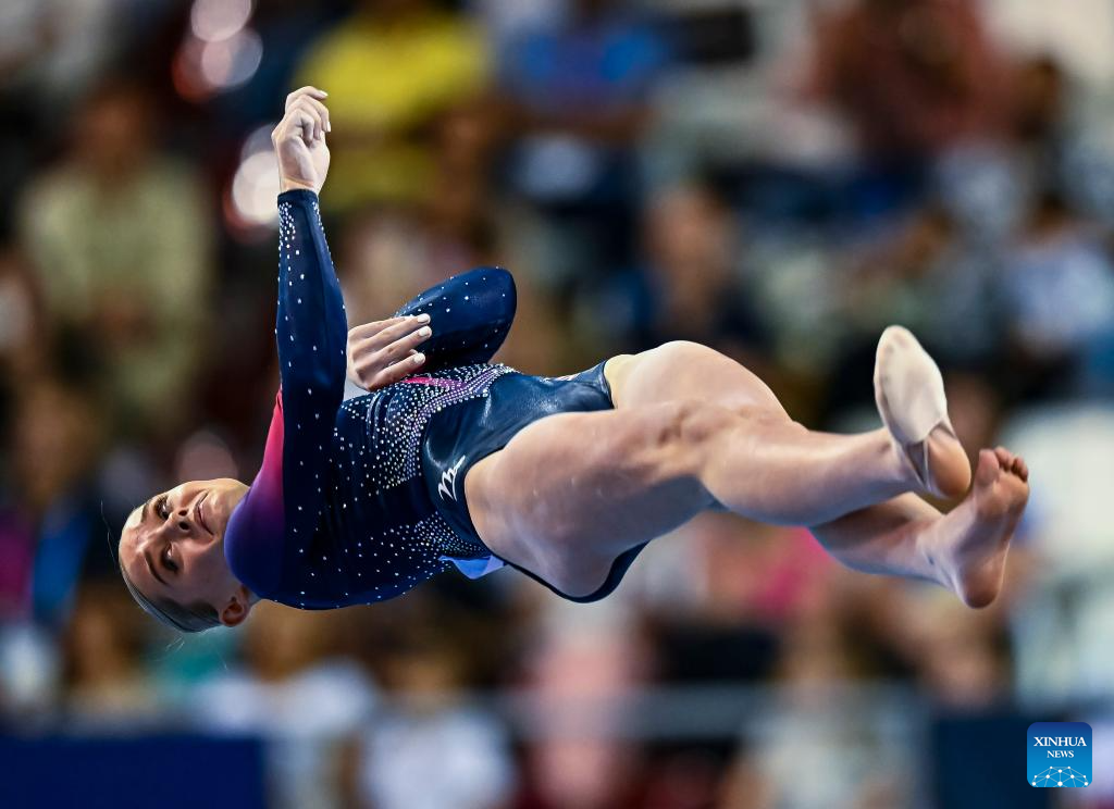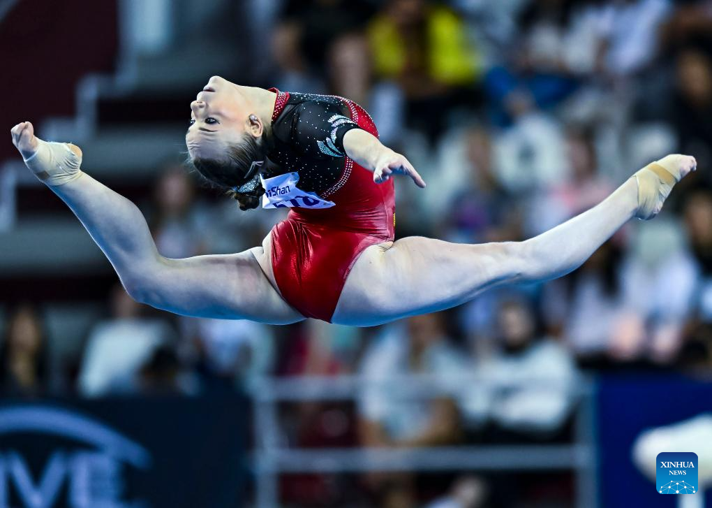 Laura Casabuena of Spain competes during the women's floor exercise final at the 16th FIG Artistic Gymnastics Apparatus World Cup in Doha, Qatar, April 20, 2024. (Photo by Nikku/Xinhua)