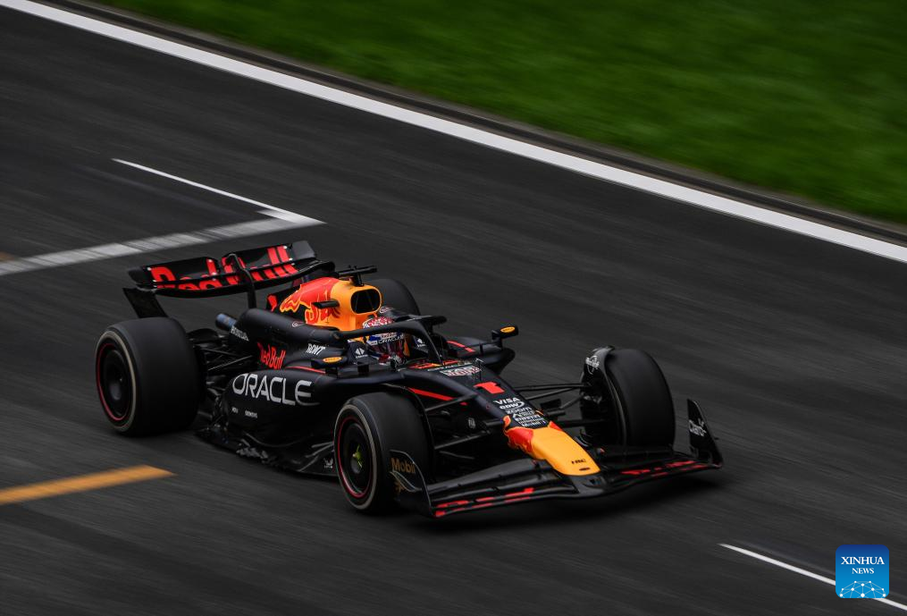 Red Bull Racing's Dutch driver Max Verstappen competes during the Chinese Formula One Grand Prix race at the Shanghai International Circuit in Shanghai, China, on April 21, 2024. (Xinhua/Xia Yifang)