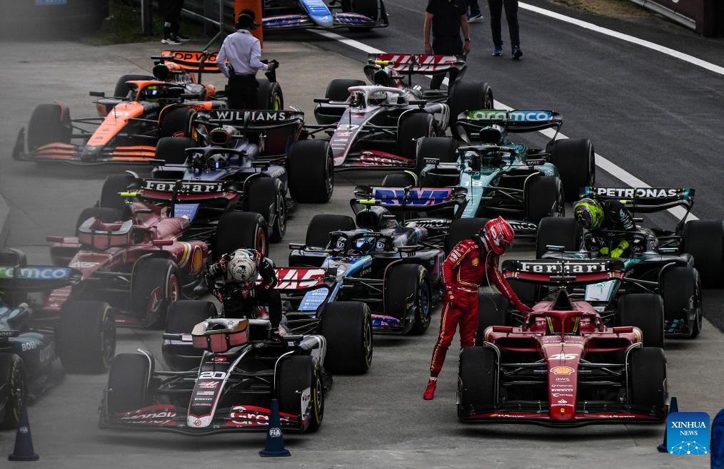 Drivers start during the Chinese Formula One Grand Prix race at the Shanghai International Circuit in Shanghai, China, on April 21, 2024. (Xinhua/Xia Yifang)