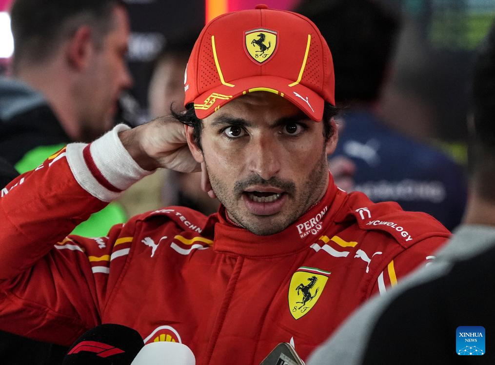 Ferrari's Spanish driver Carlos Sainz competes during the Chinese Formula One Grand Prix race at the Shanghai International Circuit in Shanghai, China, on April 21, 2024. (Xinhua/Wang Xiang)