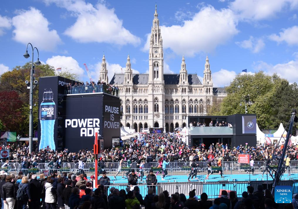 Participants run past Rathausplatz during the 2024 Vienna City Marathon in Vienna, Austria, April 21, 2024. (Xinhua/He Canling)