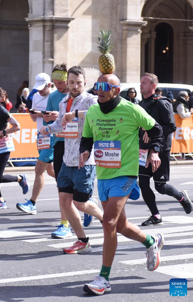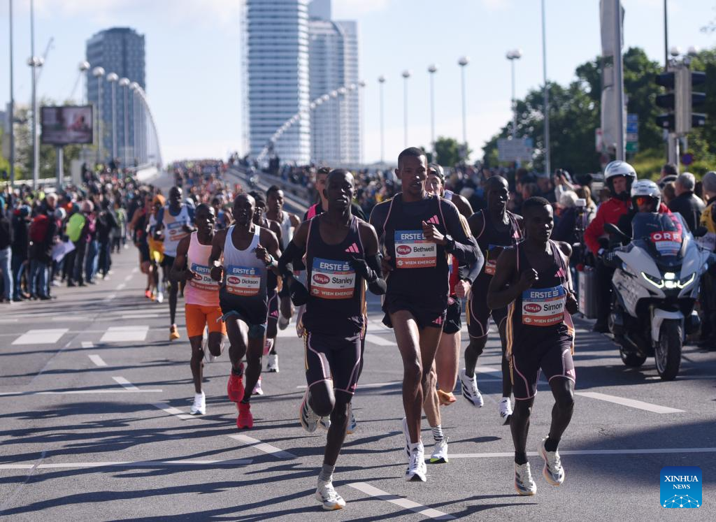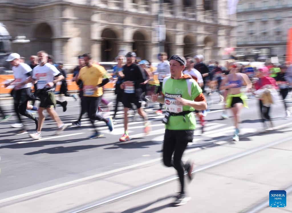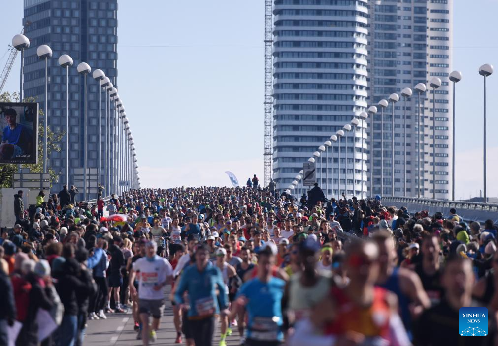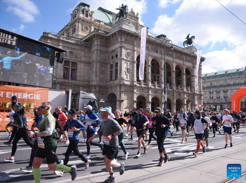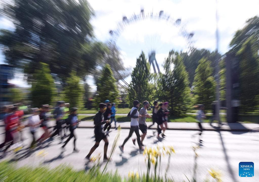 Participants run during the 2024 Vienna City Marathon in Vienna, Austria, April 21, 2024. (Xinhua/He Canling)