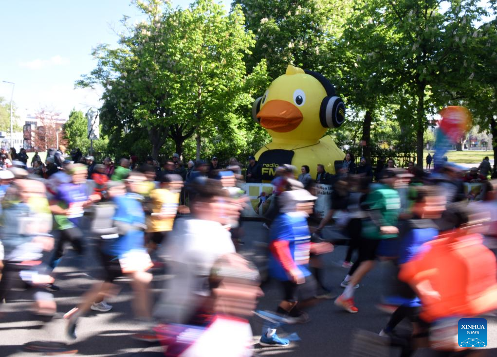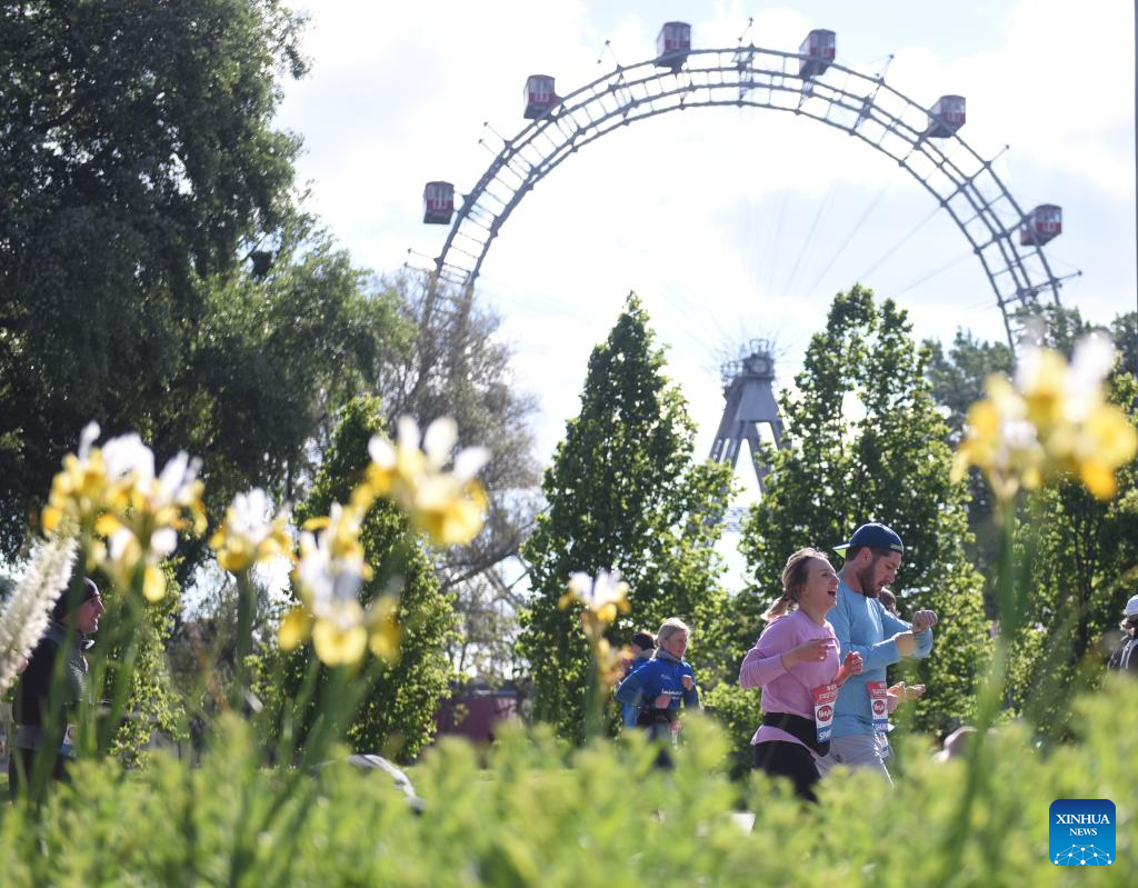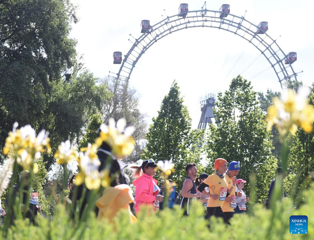 Participants run past the Prater Park during the 2024 Vienna City Marathon in Vienna, Austria, April 21, 2024. (Xinhua/He Canling)