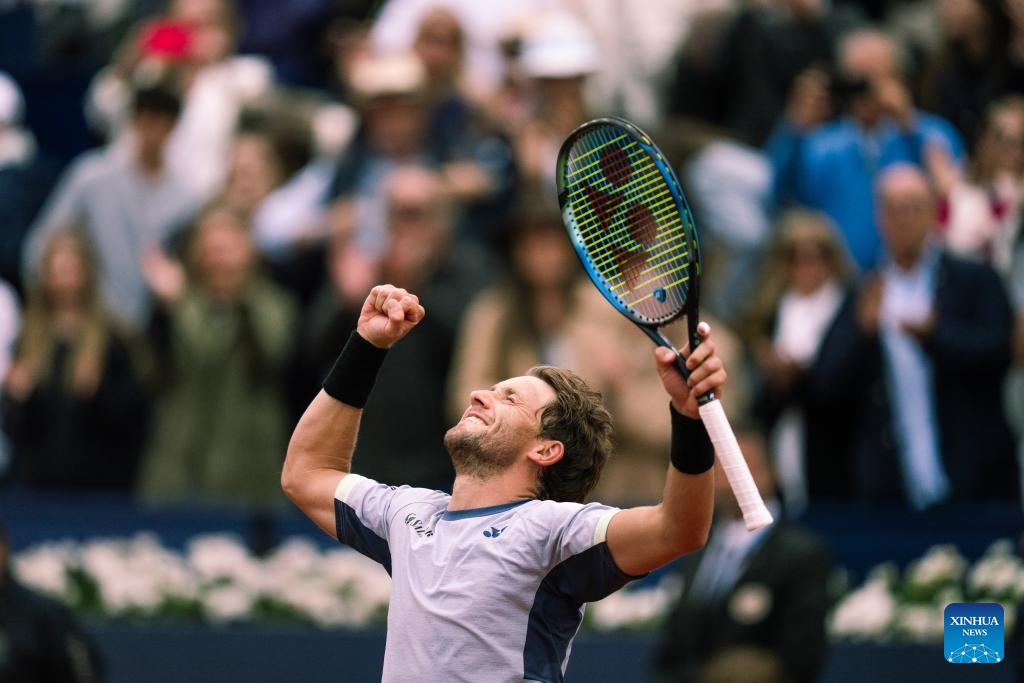 Casper Ruud of Norway celebrates his victory at the end of the final match against Stefanos Tsitsipas of Greece at the ATP Barcelona Open Banc Sabadell tennis tournament in Real Club de Tennis, Barcelona, Spain, April 21, 2024. (Photo by Joan Gosa/Xinhua)