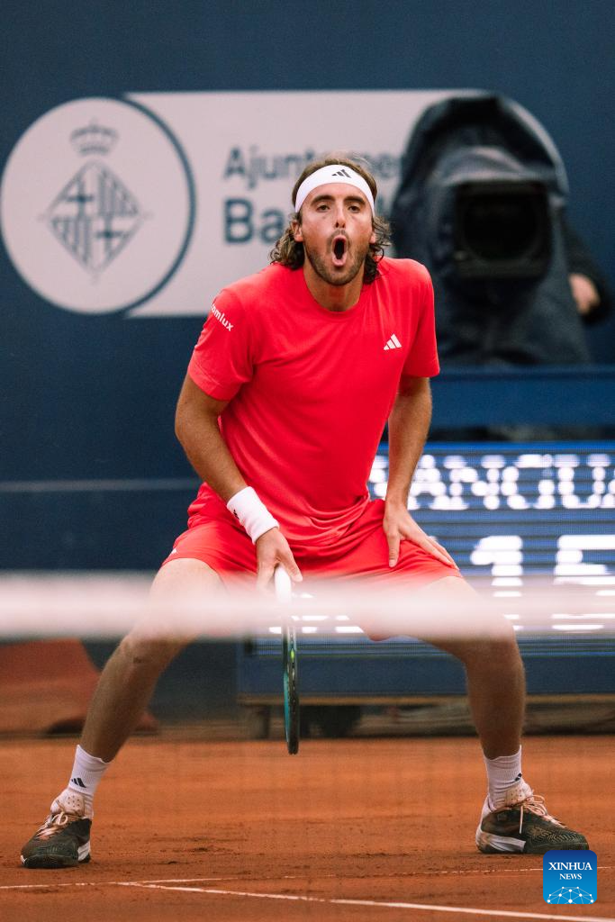 Stefanos Tsitsipas of Greece reacts during the final match against Casper Ruud of Norway at the ATP Barcelona Open Banc Sabadell tennis tournament in Real Club de Tennis, Barcelona, Spain, April 21, 2024. (Photo by Joan Gosa/Xinhua)