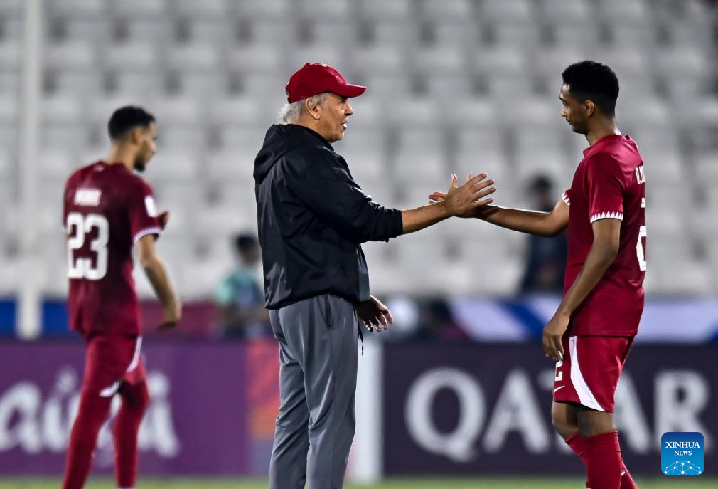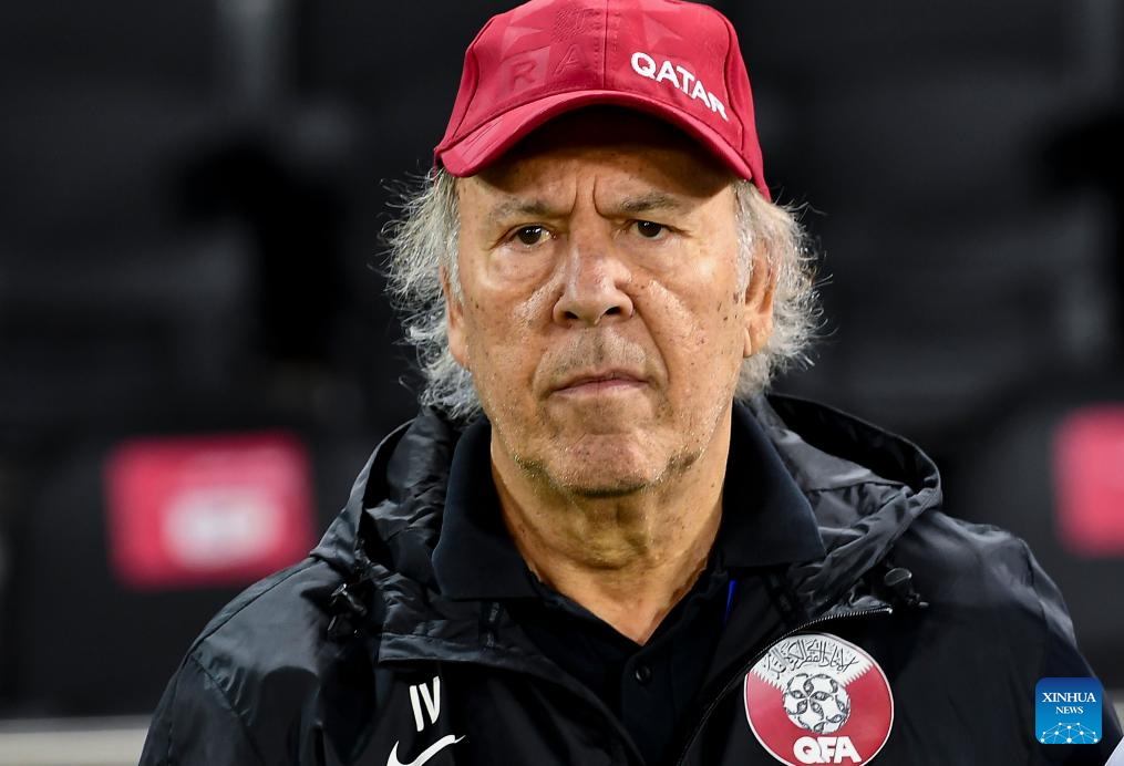 Qatar's head coach Ilidio Fernando Vale reacts during the Group A match between Qatar and Australia at AFC U23 Asian Cup Qatar 2024 football tournament in Doha, Qatar, April 21, 2024. (Photo by Nikku/Xinhua)