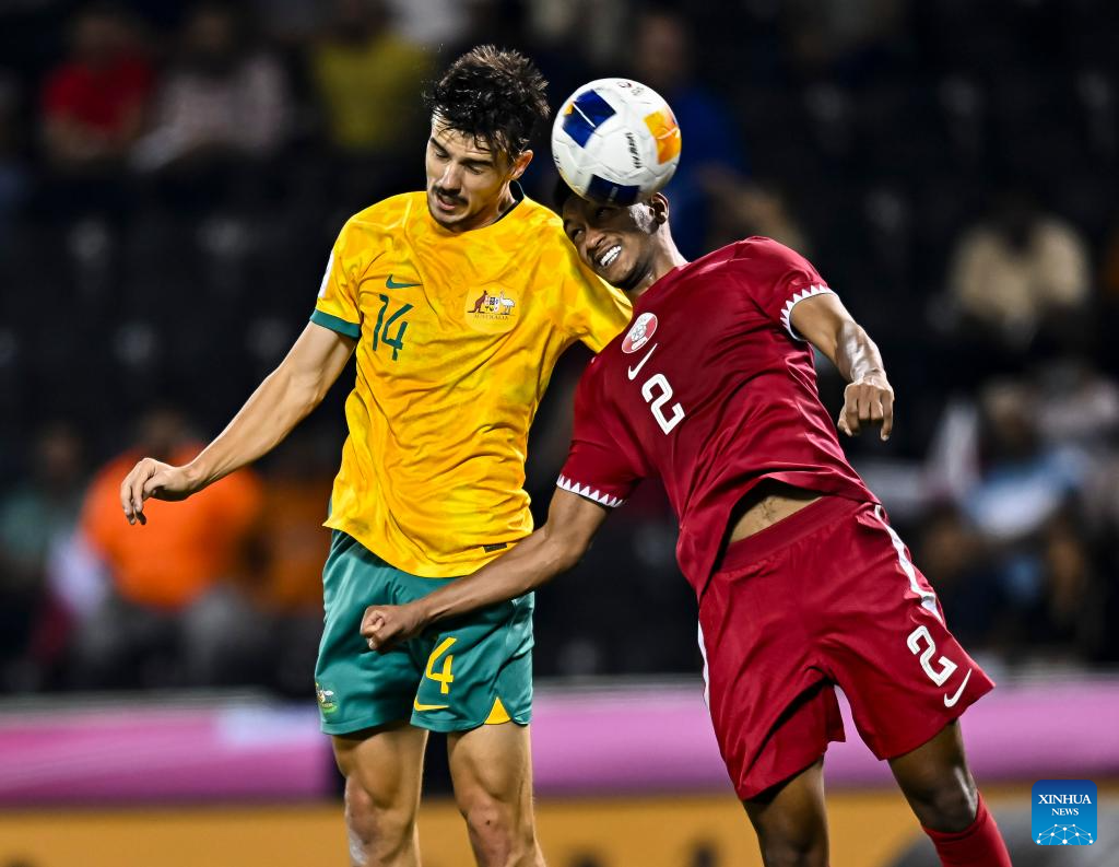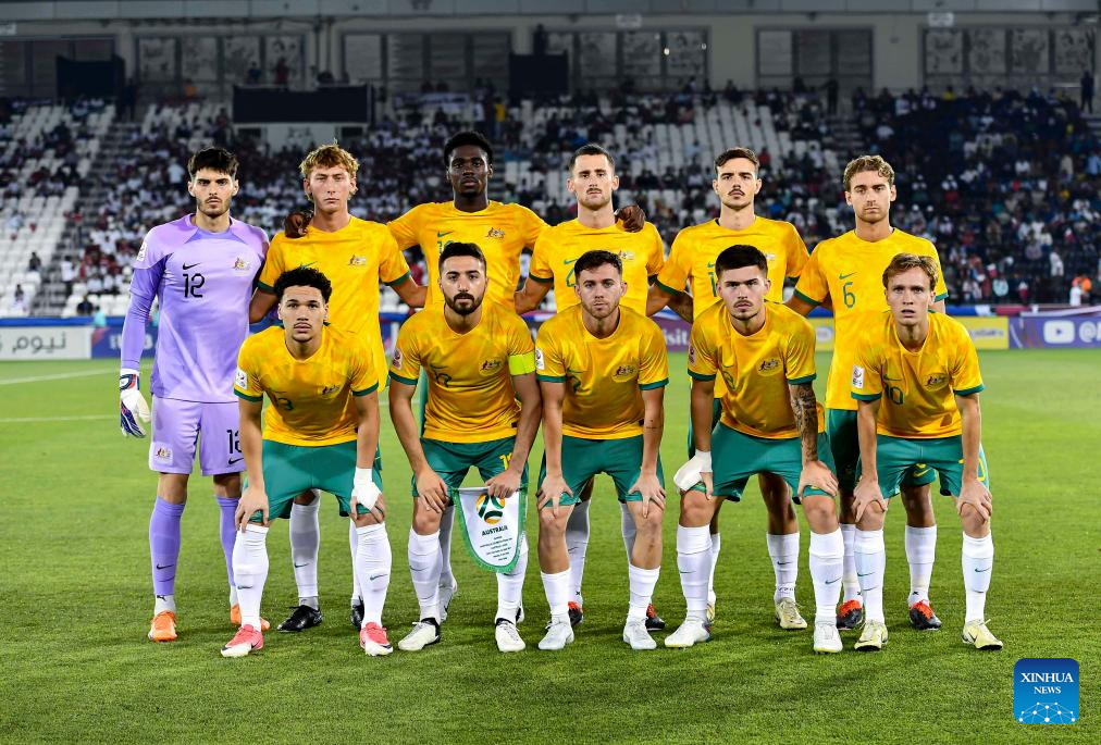 Starting players of Australia line up prior to the Group A match between Qatar and Australia at AFC U23 Asian Cup Qatar 2024 football tournament in Doha, Qatar, April 21, 2024. (Photo by Nikku/Xinhua)