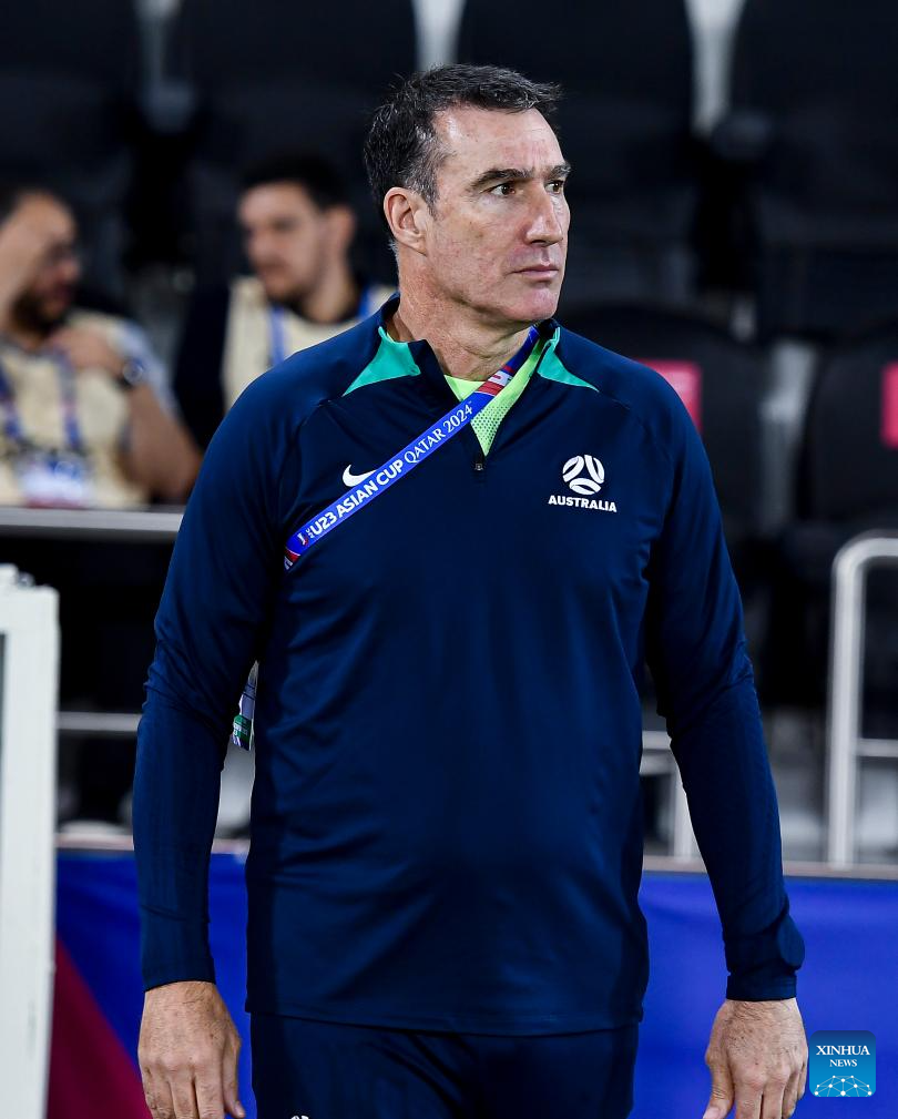 Australia's head coach Antony Vidmar reacts during the Group A match between Qatar and Australia at AFC U23 Asian Cup Qatar 2024 football tournament in Doha, Qatar, April 21, 2024. (Photo by Nikku/Xinhua)