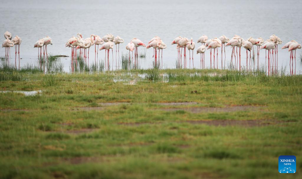 Flamingos are seen at Amboseli National Park in Kajiado County, Kenya, on April 28, 2024.