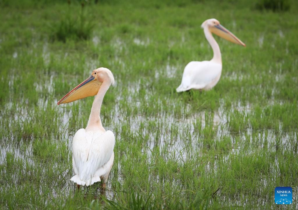 Pelicans are seen at Amboseli National Park in Kajiado County, Kenya, on April 27, 2024.