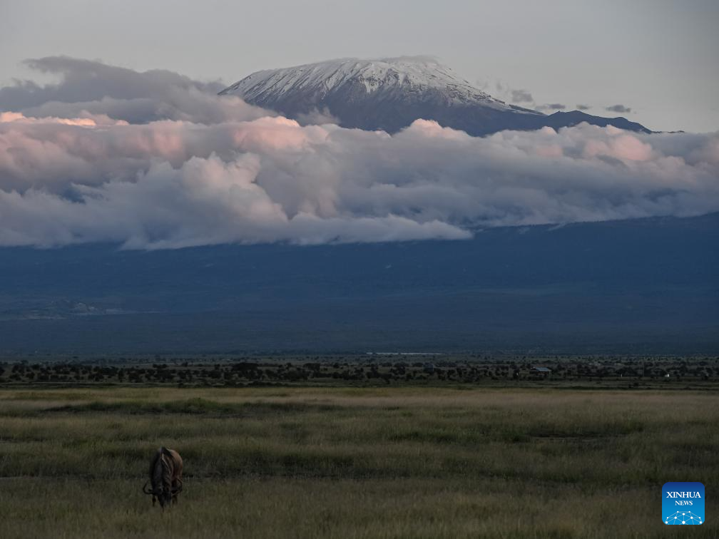 This photo taken on April 27, 2024 shows the scenery of Mount Kilimanjaro at Amboseli National Park in Kajiado County, Kenya.