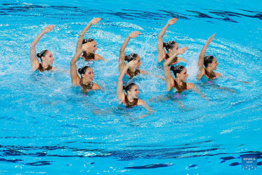 Team Mexico compete during the team acrobatic event at the World Aquatics Artistic Swimming World Cup 2024 in St-Denis, France, May 5, 2024. (Photo by Henri Szwarc/Xinhua)