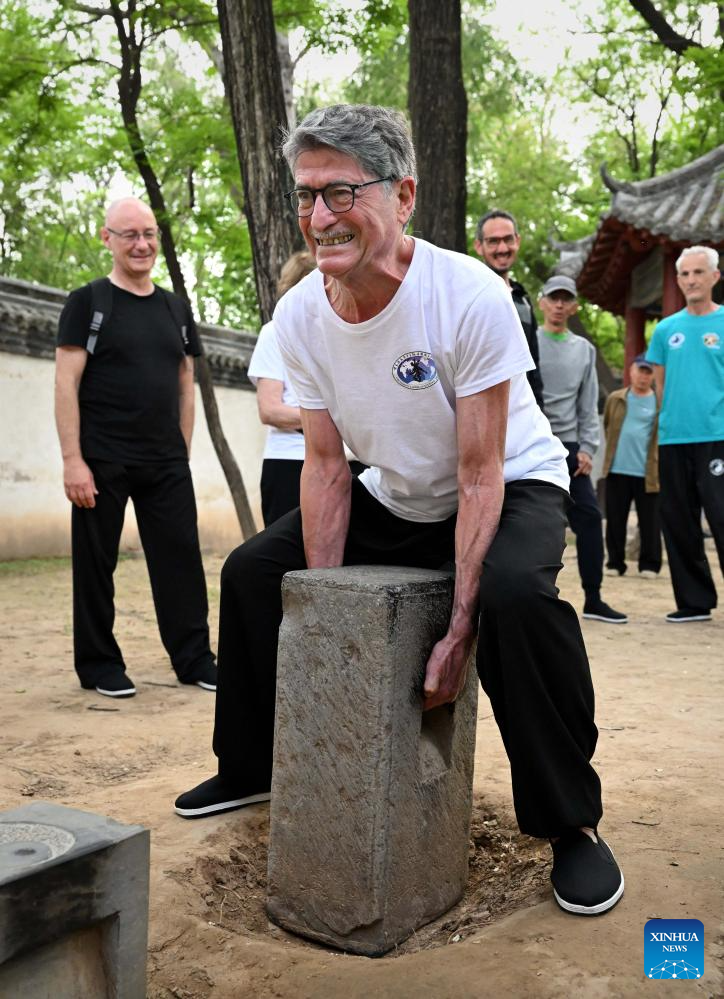 A French student practices stone-lift in Chenjiagou Village of Wenxian County, central China's Henan Province, April 18, 2024. Guillaume Large (Chen Shaoquan), a 44-year-old Taichi enthusiast from Bordeaux of France, has been practicing Taichi for over 20 years. Guillaume Large got a sports injury in his young age and decided to start practicing Taichi at a local club in France as a way of recovery. From then on he gradually fell in love with Taichi. In 2007, Guillaume Large and his fellows established an association, aiming to promote Chinese culture in France through teaching Taichi and Chinese, etc.(Xinhua/Li An)