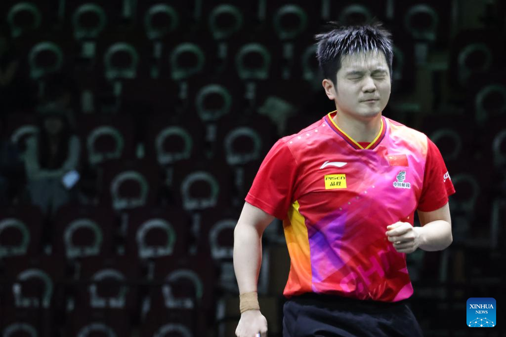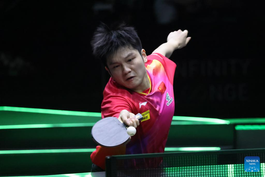 JEDDAH, May 8 (Xinhua) -- Reigning world champion Fan Zhendong suffered a dramatic defeat, losing to Germany's Patrick Franziska in full sets and bowing out of the men's singles round of 16 at the 2024 WTT Saudi Smash here on Wednesday.