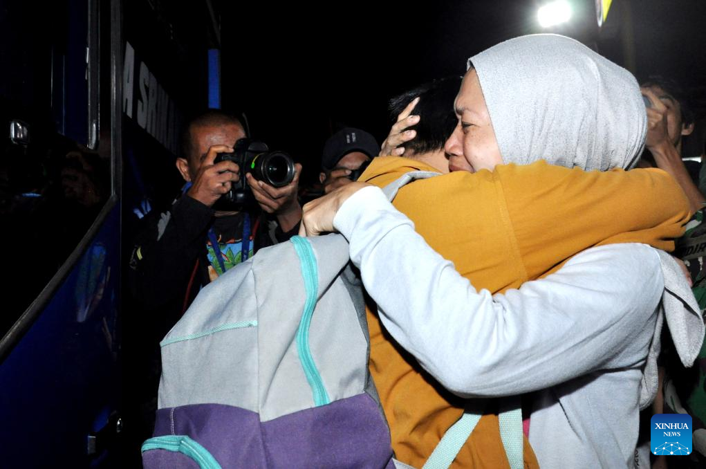 A woman embraces her son, a passenger who has survived a bus accident, as he arrives in Depok, West Java, Indonesia, on May 12, 2024. Ten people were killed and more than 10 others wounded in a bus accident in Subang regency of Indonesia's West Java province on Saturday, a rescuer said. (Photo by Rahmat Dian P./Xinhua)