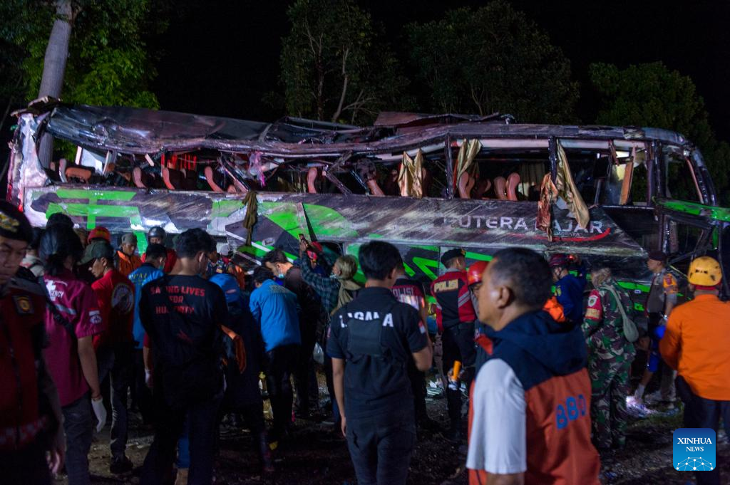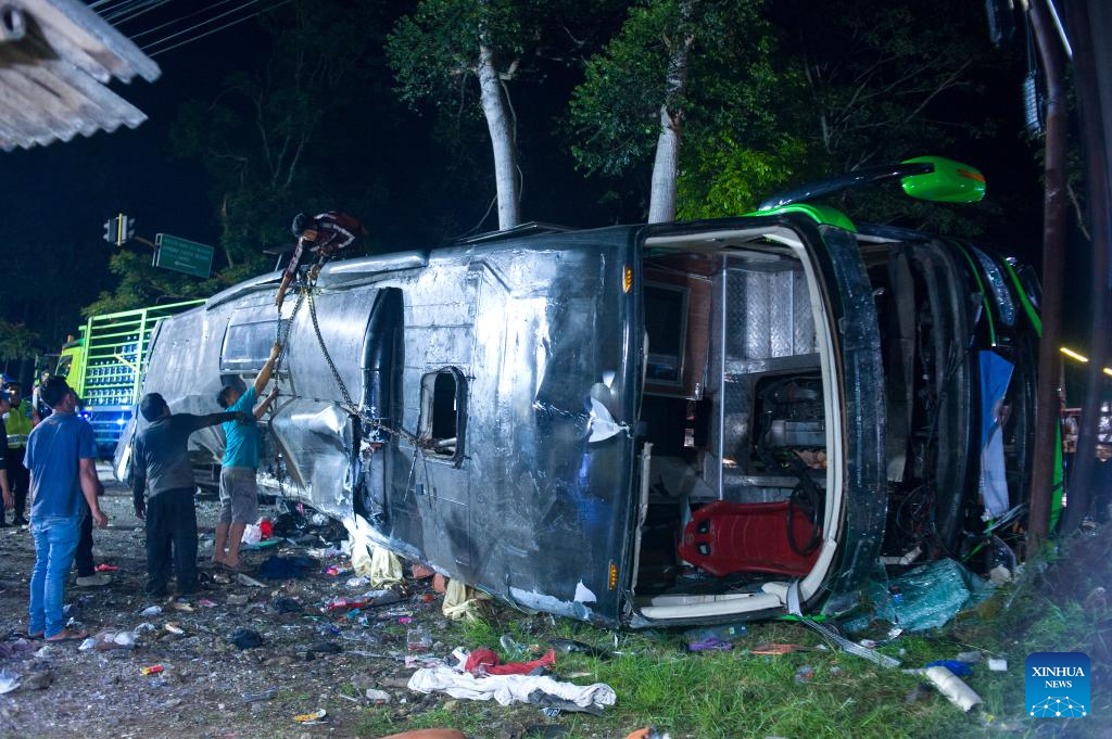 JAKARTA, May 11 (Xinhua) -- Ten people were killed and more than 10 others wounded in a bus accident in Subang regency of Indonesia's West Java province on Saturday, a rescuer said.