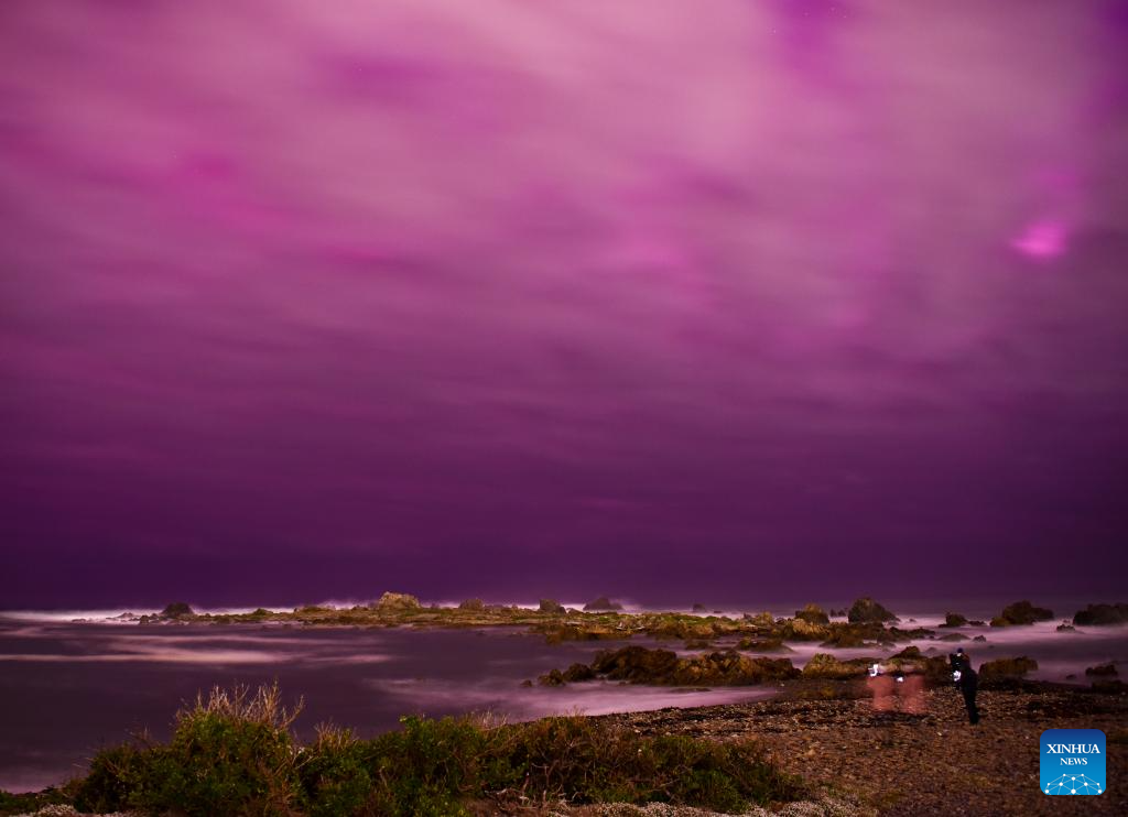 This photo taken on May 11, 2024 shows the Aurora Australis, also known as the Southern Lights, in Christchurch, New Zealand. (Photo by Sun Xiaotong/Xinhua)