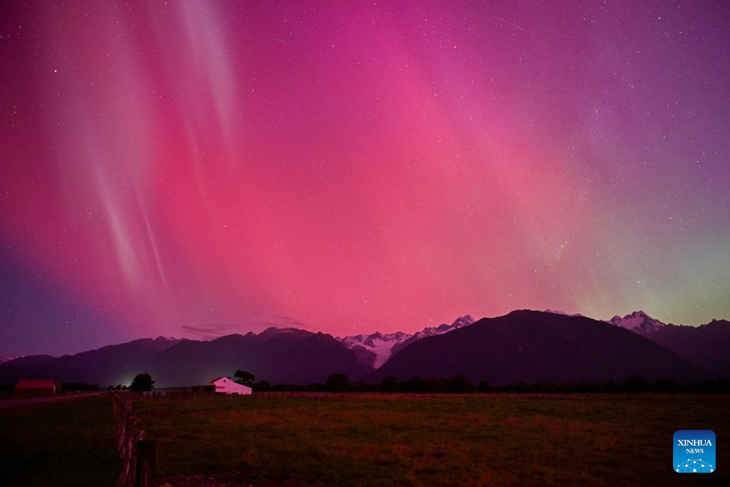 This photo taken on May 11, 2024 shows the Aurora Australis, also known as the Southern Lights, seen from Fox Glacier on the west coast of the South Island, New Zealand. (Photo by Yang Liu/Xinhua)
