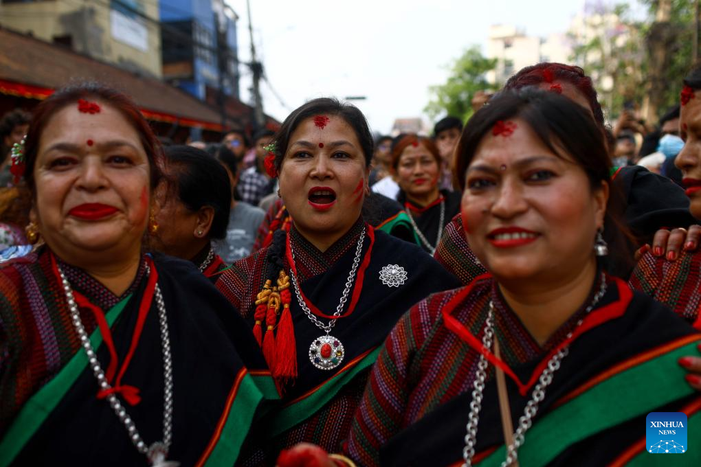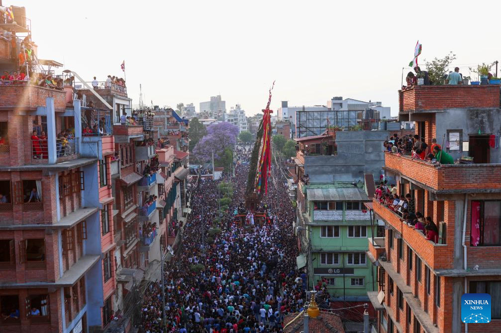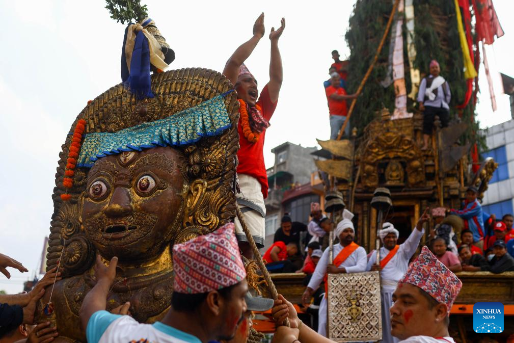 This photo taken on May 11, 2024 shows a scene during the celebration of Rato Machindranath festival in Lalitpur, Nepal. Local people worship Rato Machindranath, the god of rain, for a good harvest. (Photo by Sulav Shrestha/Xinhua)
