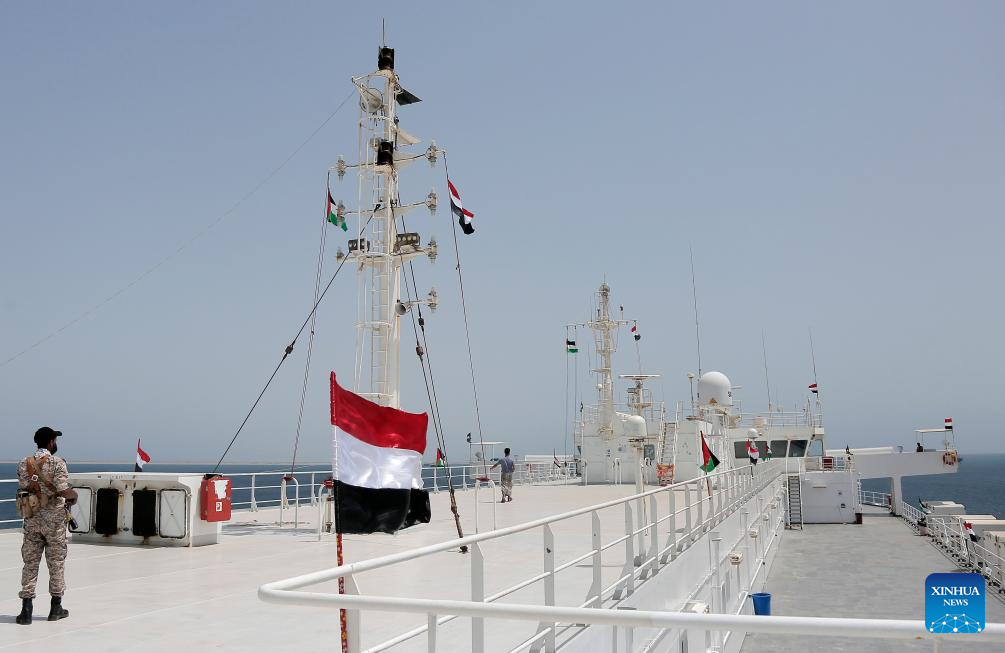 HODEIDAH, Yemen, May 12 (Xinhua) -- A delegation from the International Committee of the Red Cross (ICRC) visited on Sunday the Galaxy Leader, a vehicle carrier hijacked by the Houthi group, and met with its crew near the port city of Hodeidah in western Yemen.
