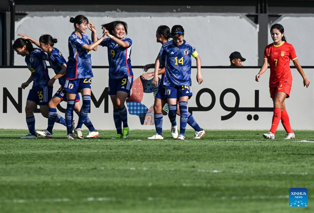 Players of Japan celebrate scoring during the Group B match of the AFC U17 Women's Asian Cup 2024 between Japan and China in Bali, Indonesia, May 13, 2024. (Xinhua/Agung Kuncahya B.)