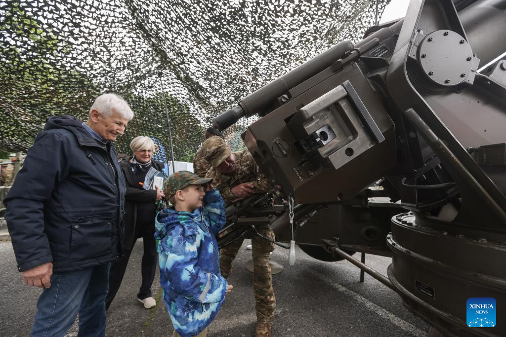 People look at a 155 mm howitzer during the open day of the Slovenian Army in Maribor, Slovenia, on May 14, 2024. The Slovenian Army opened its doors to the public here on Tuesday to mark the Slovenian Army Day which falls on May 15. (Photo by Zeljko Stevanic/Xinhua)