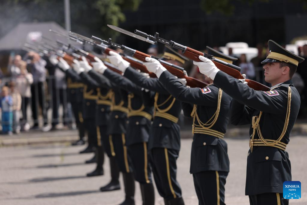 A guard of honor performs during the open day of the Slovenian Army in Maribor, Slovenia, on May 14, 2024. The Slovenian Army opened its doors to the public here on Tuesday to mark the Slovenian Army Day which falls on May 15. (Photo by Zeljko Stevanic/Xinhua)