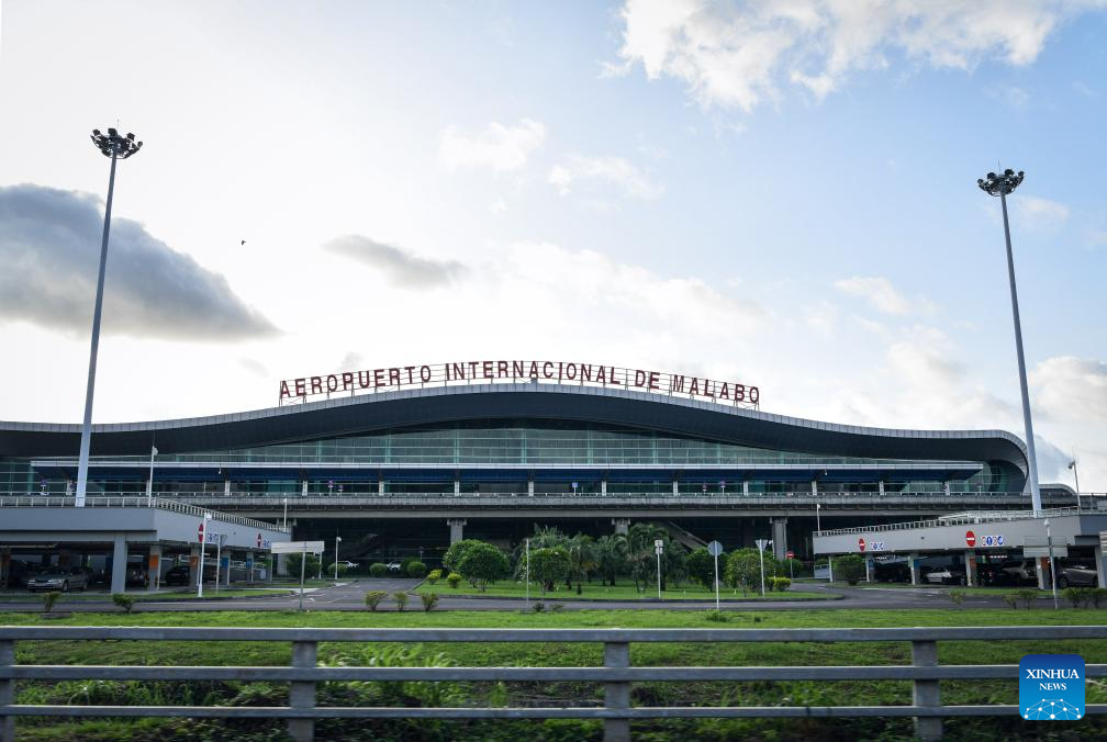 This photo taken on May 15, 2024 shows an exterior view of Malabo International Airport in Equatorial Guinea. The new terminal project of Malabo International Airport, constructed by Weihai International Economic & Technical Cooperative Co., Ltd., turned operational in March 2023. Designed and built entirely according to Chinese standards, the project has a total construction area of approximately 45,000 square meters, capable of take-off and landing services for various types of civil aviation aircraft worldwide. (Xinhua/Han Xu)