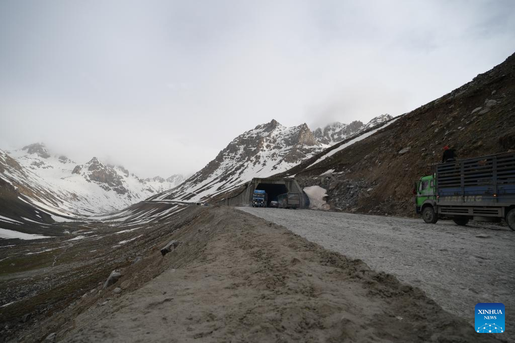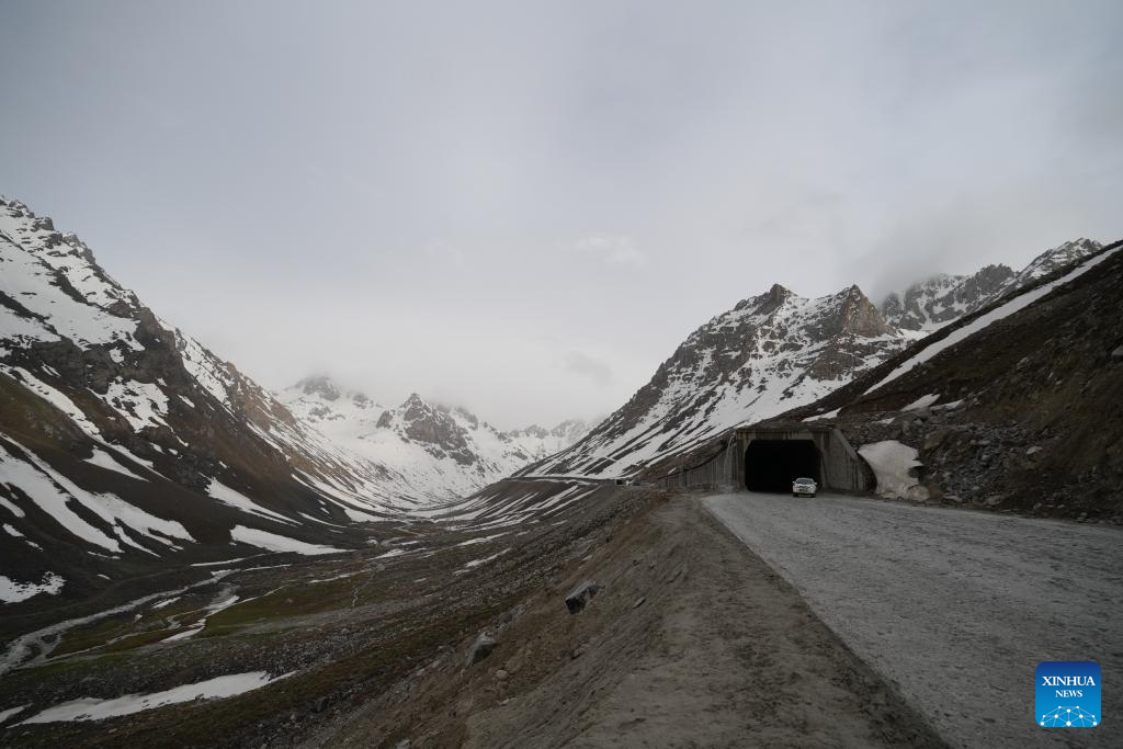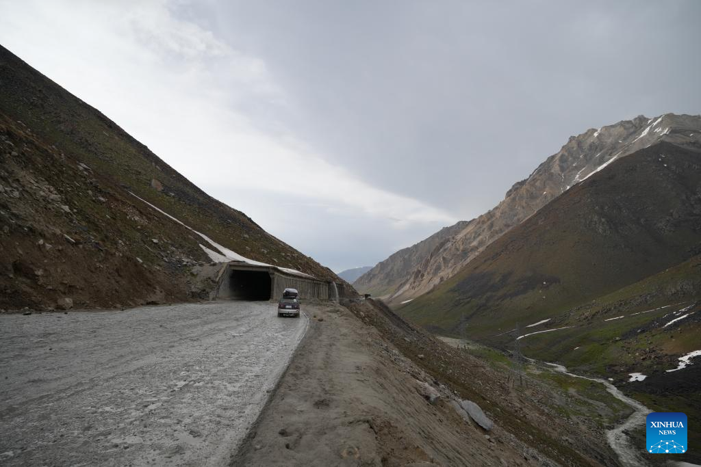 This photo taken on May 16, 2024 shows the road along the Salang Pass linking to the northern entrance of the Salang Tunnel in north Afghanistan's Baghlan Province. Connecting Kabul to the nine northern provinces onward to Central Asian states, the Salang Tunnel along the Salang Pass in Afghanistan was first opened in 1964 and was badly damaged due to more than four decades of wars. Reopened in 2023, the tunnel now serves as an essential lifeline for the war-ridden country. (Xinhua/Zhao Jiasong)