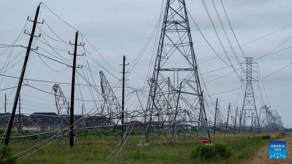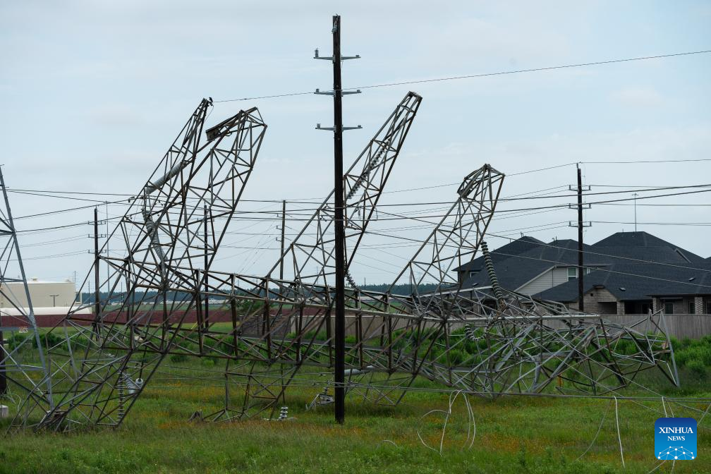 Photo taken on May 17, 2024 shows electricity facilities damaged by storms in northwestern Houston, Texas, the United States. The death toll of powerful storms ripping through Houston on Thursday night has risen to five as the largest city in the U.S. state of Texas is entering a "recovery mode" in the aftermath of widespread damage, authorities said on Friday. (Photo by Chen Chen/Xinhua)