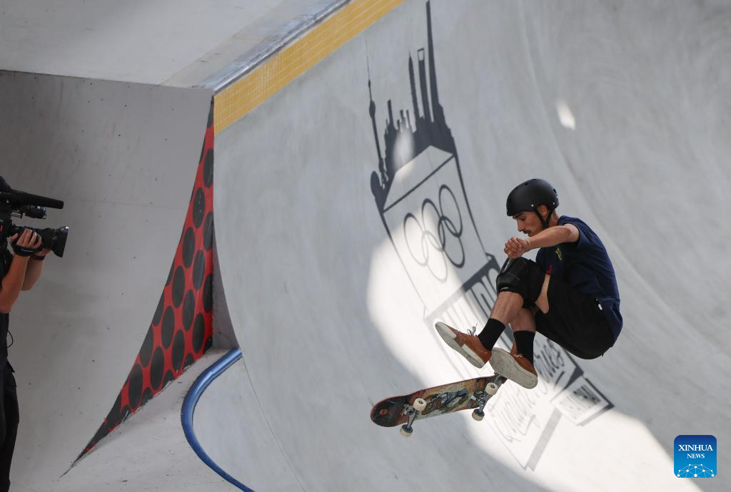 Danny Leon of Spain competes during the men's park preliminaries of skateboarding at the Olympic Qualifier Series Shanghai in east China's Shanghai, May 17, 2024. (Xinhua/Wang Kaiyan)