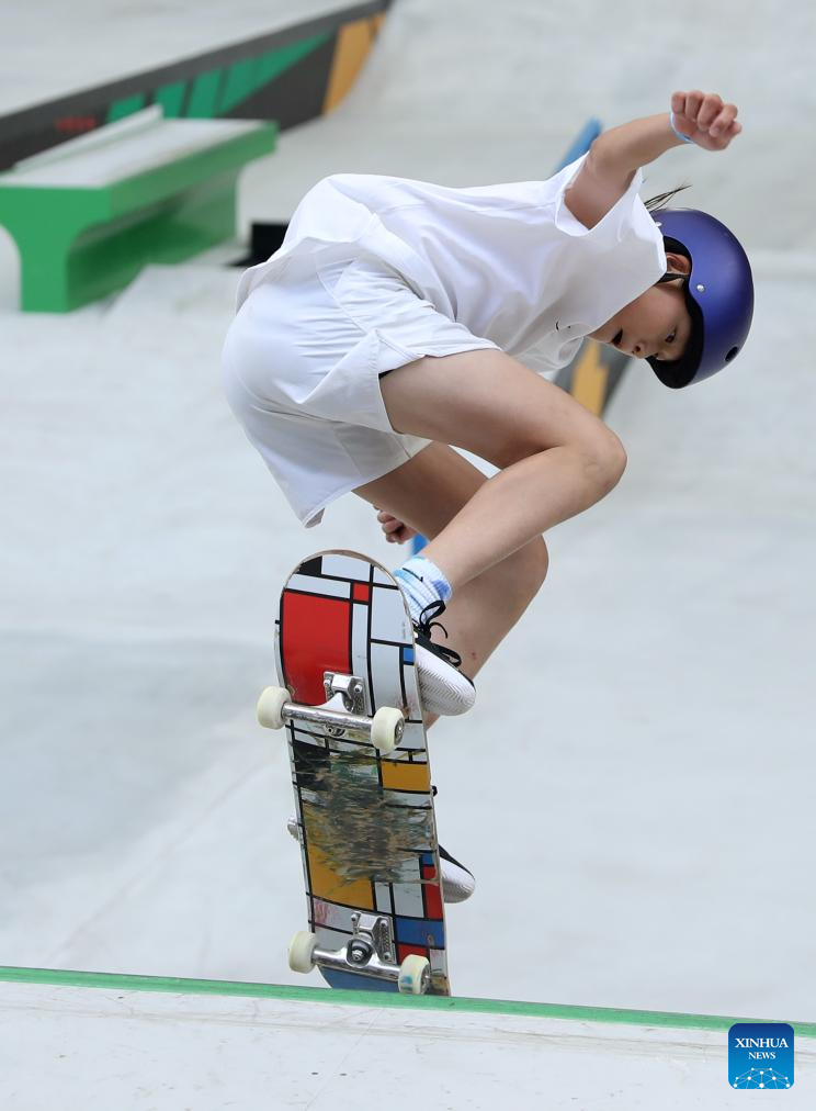 Onodera Ginwoo of Japan competes during the men's street final of skateboarding at the Olympic Qualifier Series Shanghai in east China's Shanghai, May 19, 2024. (Xinhua/Jia Haocheng)