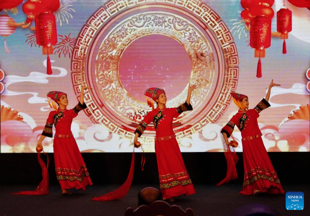 Dancers perform during an event titled "Tea for Harmony: Yaji Cultural Salon and Guangxi Cultural and Tourism Promotion" in Colombo, Sri Lanka, May 21, 2024. Local Chinese tea lovers had an immersive experience of tea cultures during a celebration of the International Tea Day here on Tuesday. (Xinhua/Wu Yue)