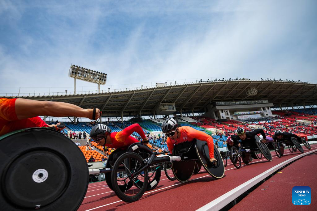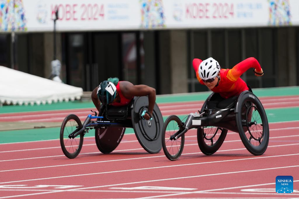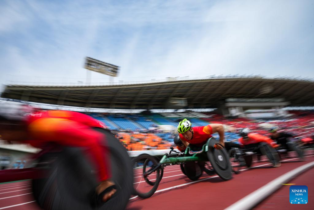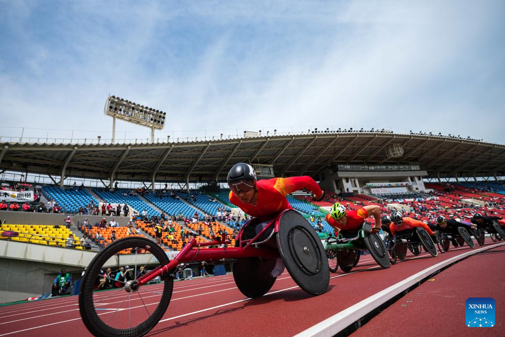 Athletes compete during the Men's 1500m T54 Final at the Para Athletics World Championships held in Kobe, Japan, on May 22, 2024. (Xinhua/Zhang Xiaoyu)