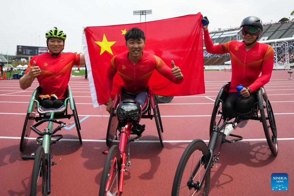 KOBE, Japan, May 22 (Xinhua) -- Chinese para-athletes Jin Hua and Dai Yunqiang swept the gold and silver medals in the men's 1,500m T54 final on Wednesday at the Para Athletics World Championships.
