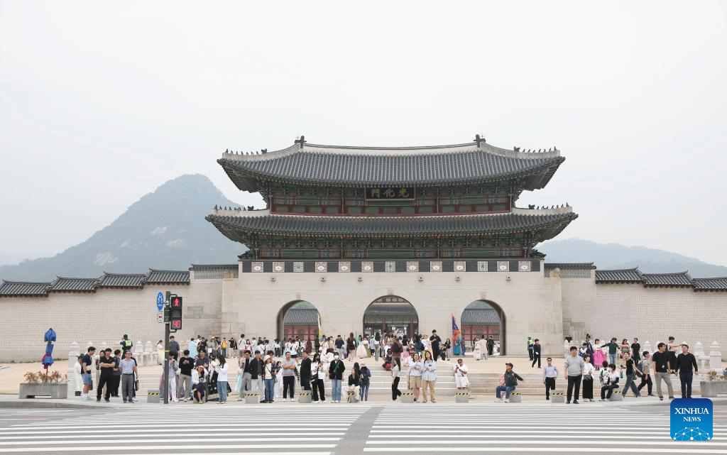 People visit the Gwanghwamun Square in Seoul, South Korea, on May 24, 2024. The ninth Trilateral Summit Meeting among China, Japan and the Republic of Korea (ROK) will be held in Seoul from May 26 to 27. (Xinhua/Yao Qilin)