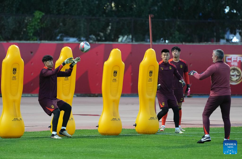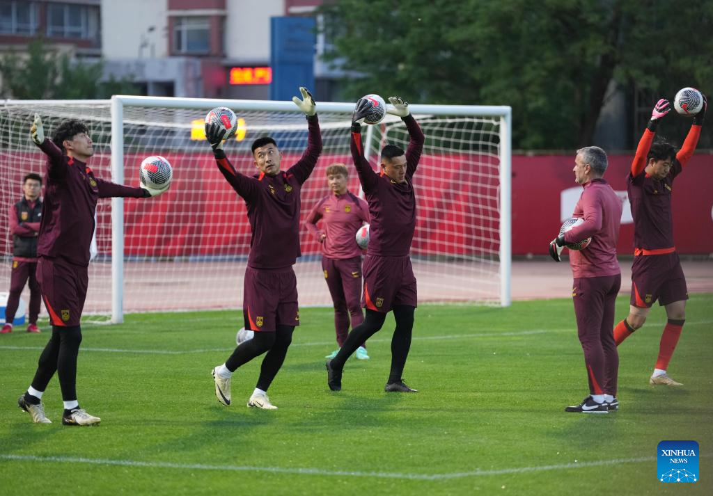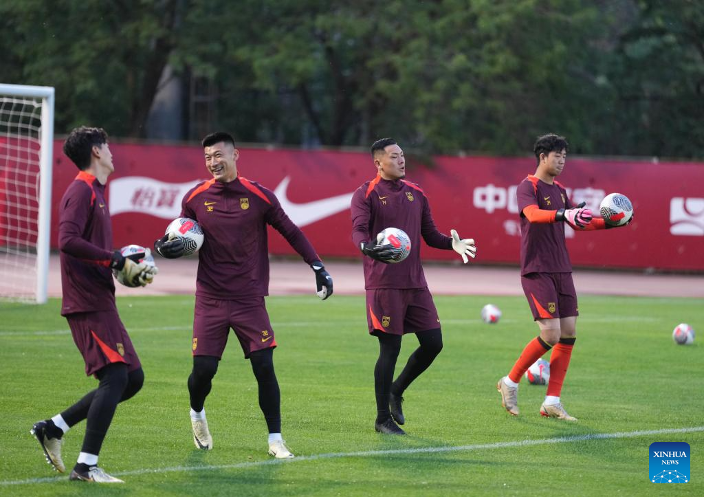 Goalkeepers of Chinese men's national football team attend a training session in preparation for the upcoming 2026 FIFA World Cup Asian qualifiers match in Shenyang, northeast China's Liaoning Province, May 27, 2024. (Xinhua/Li Gang)
