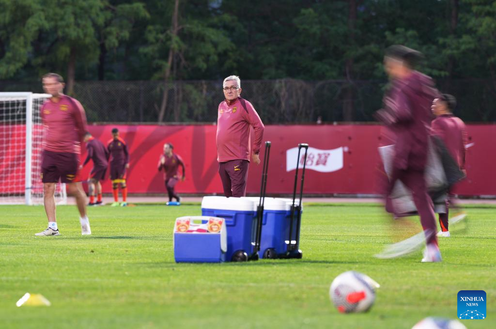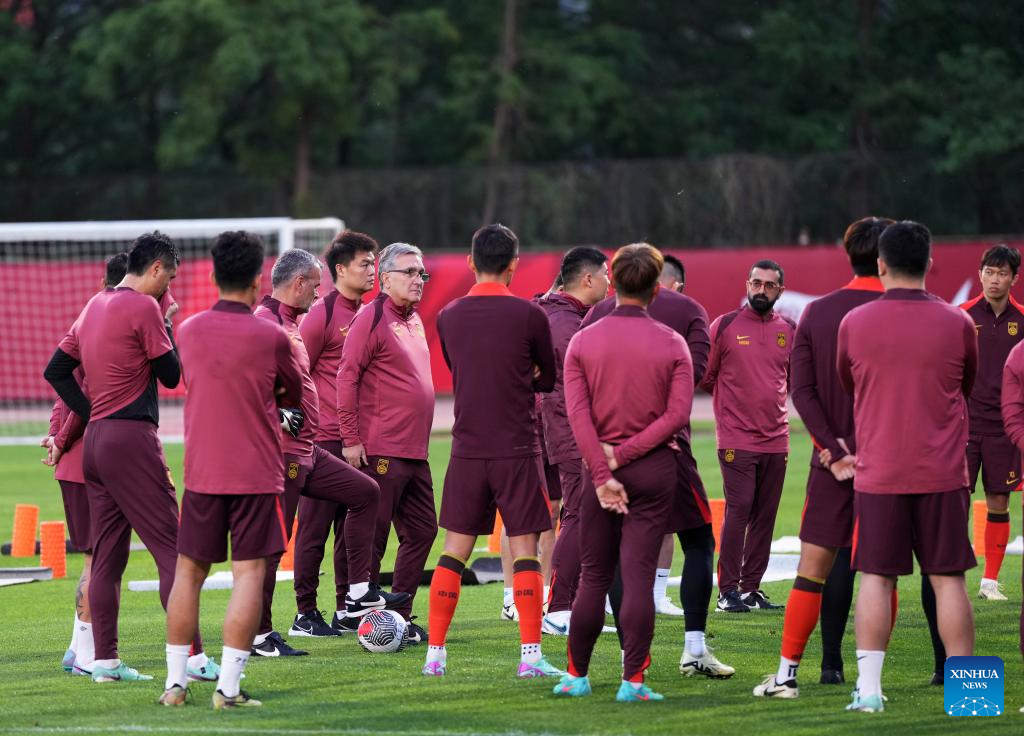 Branko Ivankovic (4th R), head coach of the Chinese men's national football team, prepares during a training session in preparation for the upcoming 2026 FIFA World Cup Asian qualifiers match in Shenyang, northeast China's Liaoning Province, May 27, 2024. (Xinhua/Zhang Lei)