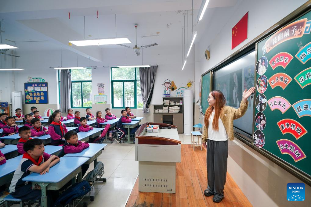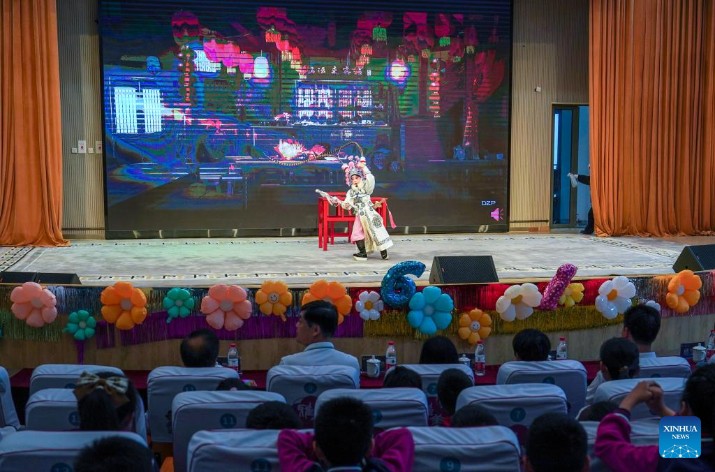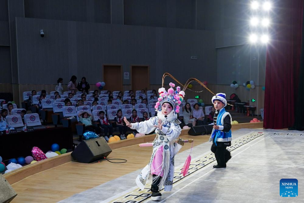 Pupils take a Kunqu Opera training class at Shipai Center Primary School of Kunshan in Kunshan City, east China's Jiangsu Province, May 26, 2024.(Xinhua/Li Bo)