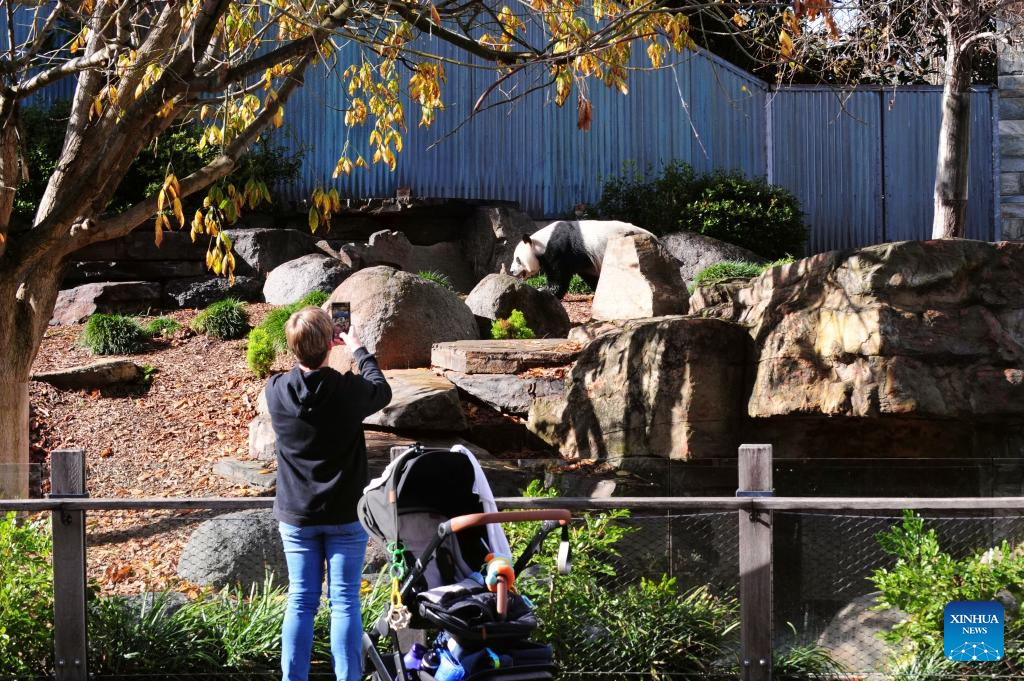 Tourists look at a giant panda at Adelaide Zoo in Adelaide, Australia, June 1, 2024. Male giant panda Wang Wang and female giant panda Fu Ni have been on loan from China since 2009, and are among the Adelaide Zoo's top attractions. (Xinhua/Zhang Jianhua)