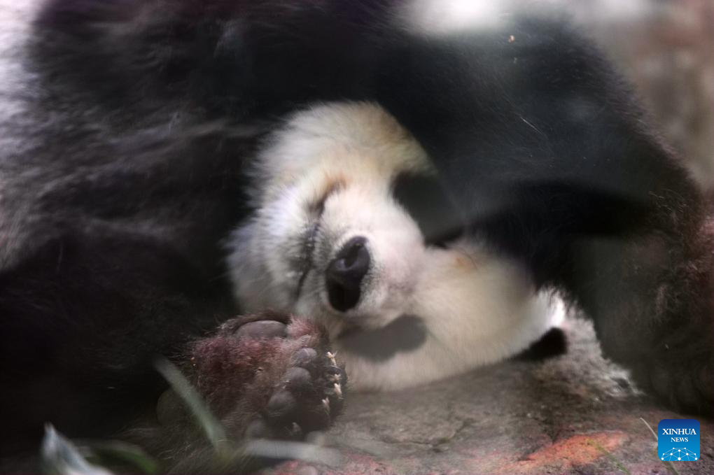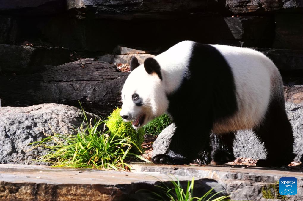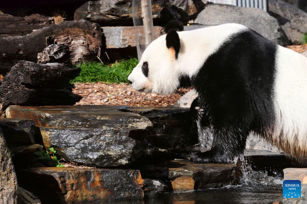 Giant panda Fu Ni is pictured at Adelaide Zoo in Adelaide, Australia, June 1, 2024. Male giant panda Wang Wang and female giant panda Fu Ni have been on loan from China since 2009, and are among the Adelaide Zoo's top attractions. (Xinhua/Zhang Jianhua)