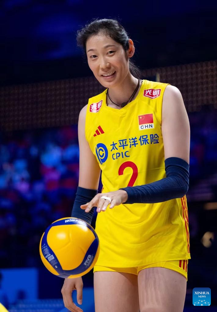 Zhu Ting of China is seen before the preliminary match between Thailand and China at the Women's Volleyball Nations League 2024 Macao in Macao, south China, June 1, 2024. (Xinhua/Cheong Kam Ka)