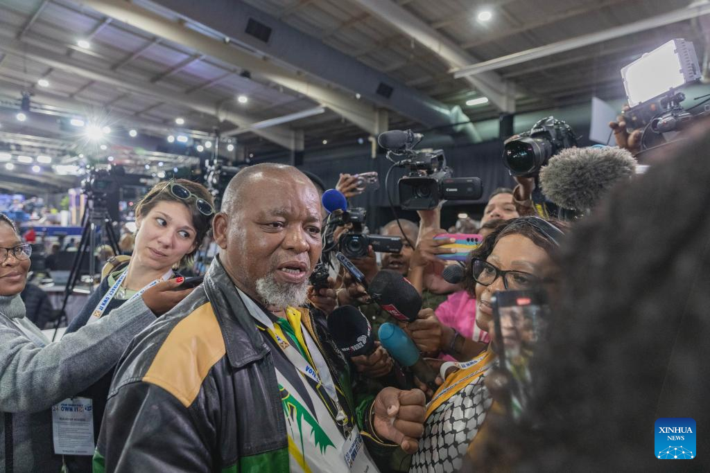 African National Congress Chairperson Gwede Mantashe speaks to media at the National Results Operations Center in Midrand, South Africa, on June 1, 2024. South Africa's ruling African National Congress (ANC) has secured about 40 percent of votes with over 99 percent of ballot counting completed in the country's general elections, the Independent Electoral Commission's (IEC) results showed on Saturday. (Xinhua/Zhang Yudong)