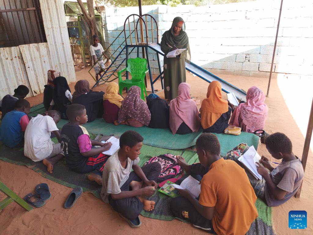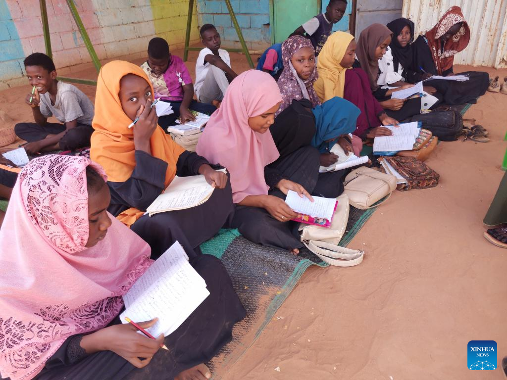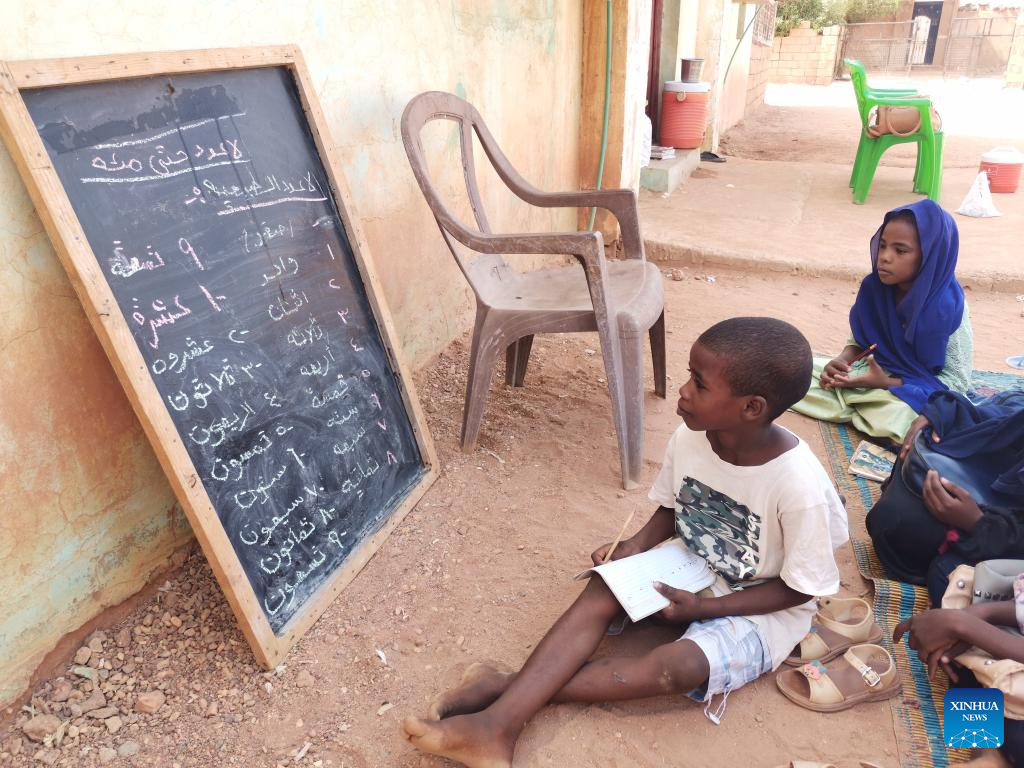This photo taken with a mobile phone shows Sudanese students having a class at a mosque yard in Omdurman city, Sudan, June 2, 2024. The ongoing conflict between the Sudanese Armed Forces (SAF) and the paramilitary Rapid Support Forces (RSF) has exposed the Sudanese children to various forms of violence and deprived them of homes and education, causing trauma for the generation.