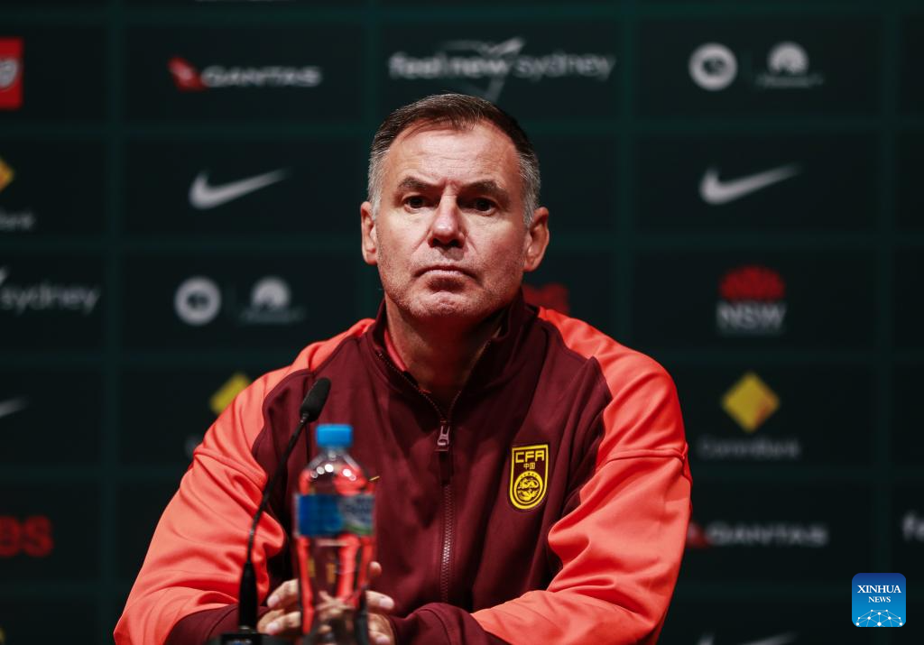 Ante Milicic, head coach of the Chinese national women's football team, attends the press conference prior to the friendly match between China and Australia in Sydney, Australia, June 2, 2024. (Xinhua/Ma Ping)