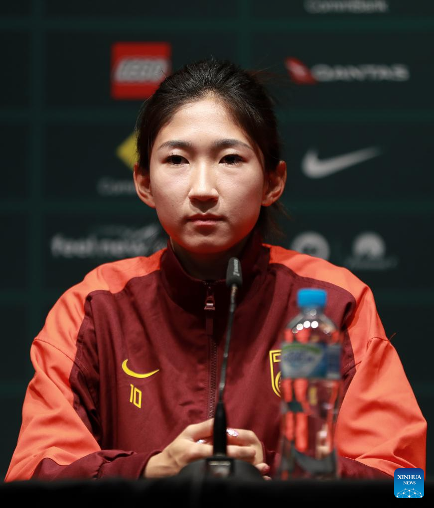Wang Yanwen, player of the Chinese national women's football team, attends the press conference prior to the friendly match between China and Australia in Sydney, Australia, June 2, 2024. (Xinhua/Ma Ping)