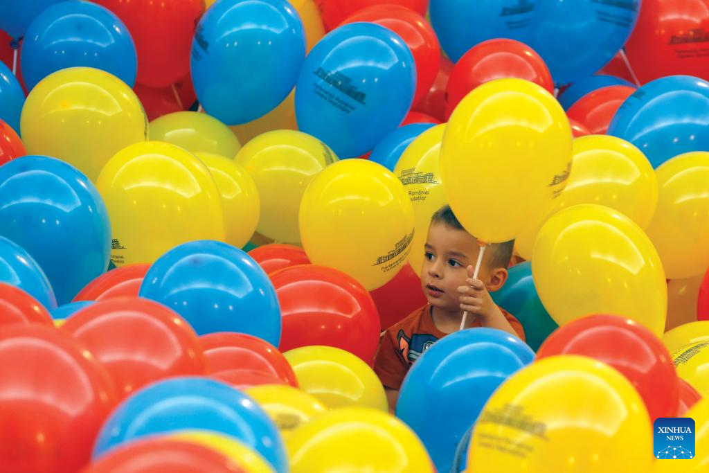 A child plays during an open-door event marking the International Children's Day at Romania's Parliament Palace in Bucharest, Romania, June 1, 2024. (Photo by Cristian Cristel/Xinhua)