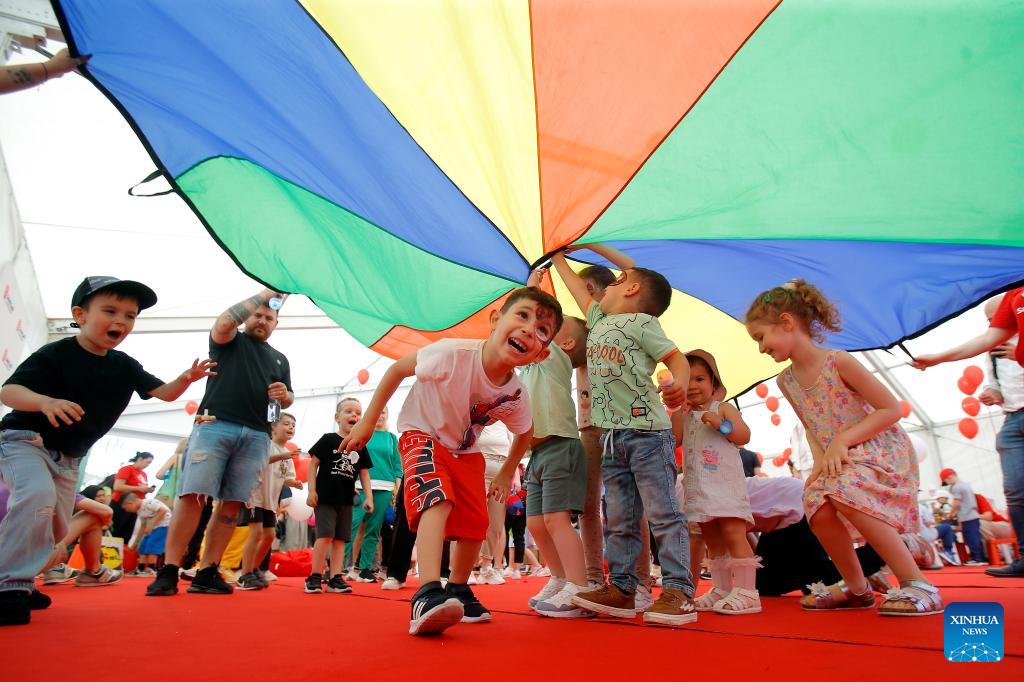 Children play during an open-door event marking the International Children's Day at Romania's Parliament Palace in Bucharest, Romania, June 1, 2024. (Photo by Cristian Cristel/Xinhua)